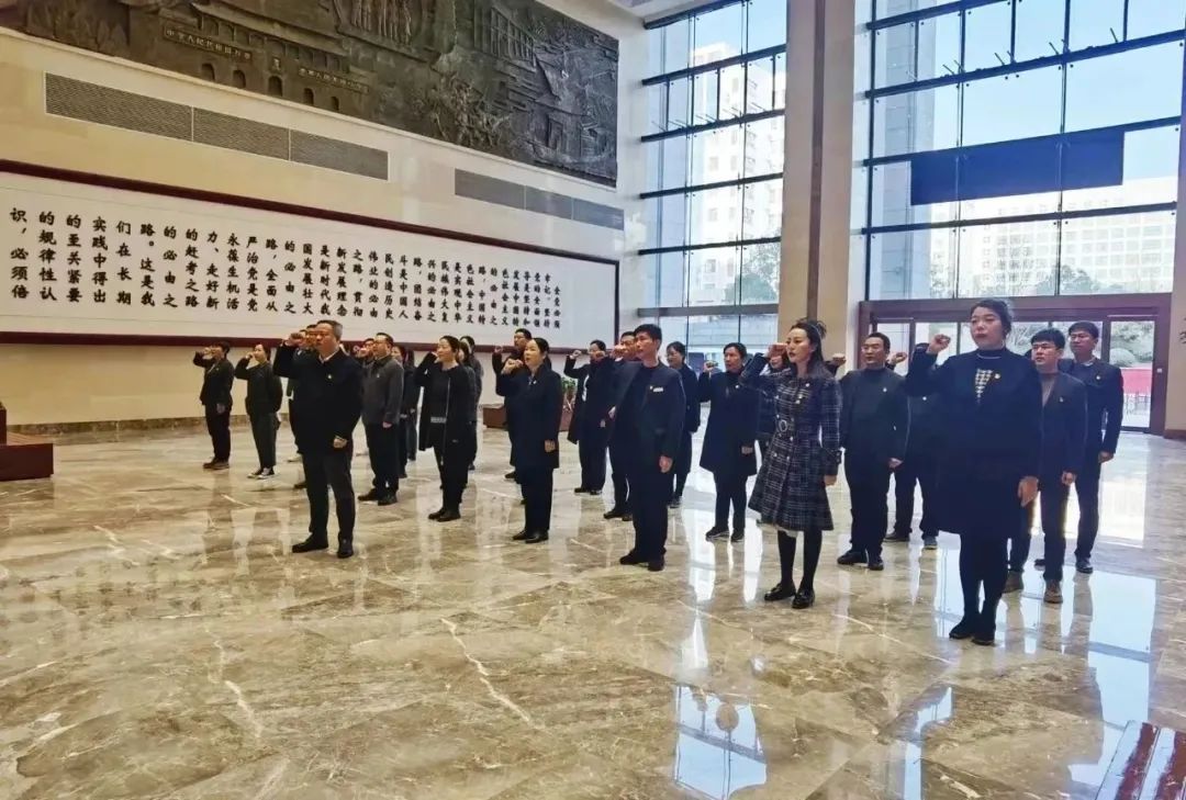 參觀學(xué)習(xí)開(kāi)始前,公司黨委副書記、副總經(jīng)理成小俊同志帶領(lǐng)全體黨員面對(duì)鮮紅的黨旗,鄭重肅立,高舉右拳,以集體宣誓的方式重溫入黨誓詞。一句句鏗鏘有力的誓詞,表達(dá)著對(duì)黨的絕對(duì)忠誠(chéng)和為黨的事業(yè)奮斗終身的決心。